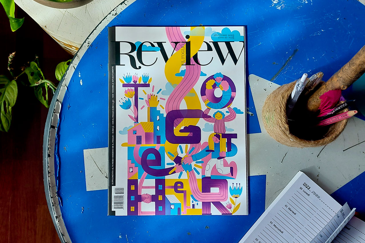 Together Cover per Review n.23, sul tema “insieme”, in edicola con il Foglio. Client:Il FoglioRelated Projects. Climate Change Design Ragazze in Campo Video Solidarity Design